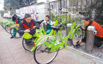 堅持擦洗維護公共自行車
