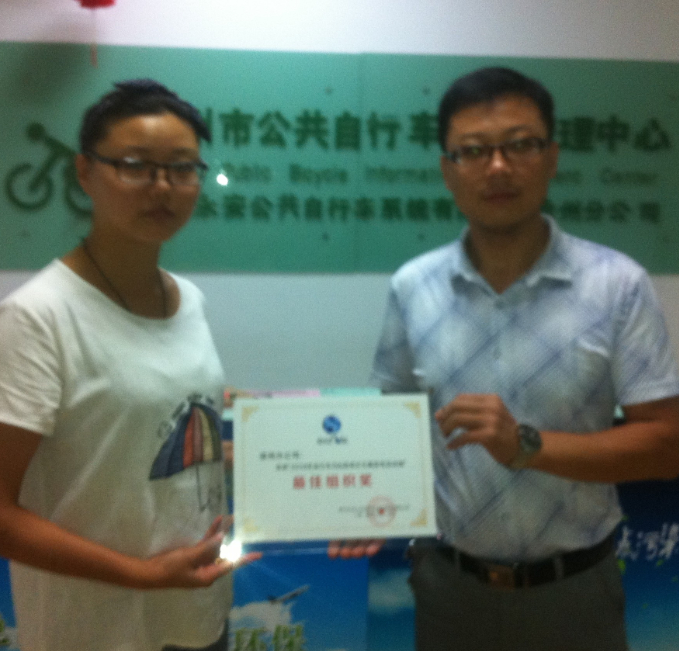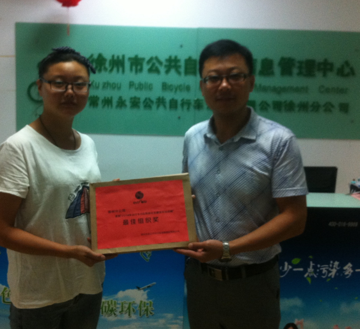 徐州公共自行車管理中心組織的一年一度地球日活動,在公司全體員工的共同努力以及徐州市民的支持下,徐州公共自行車獲得了“最佳組織獎”的殊榮。