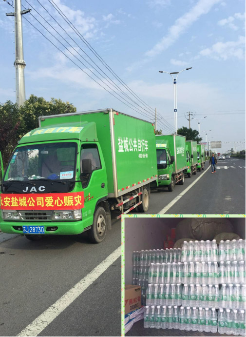 在天災(zāi)面前,我們顯得那么渺小和無(wú)力,在抗災(zāi)救災(zāi)時(shí),我們愛(ài)心力量大,我們一直與阜寧、射陽(yáng)同在。鹽城公共自行車中心發(fā)起愛(ài)心捐贈(zèng),用善款購(gòu)買了礦泉水、方便面、油布、被褥、床席、蚊香等救災(zāi)物資,送往災(zāi)區(qū),給受災(zāi)群眾送去溫暖,用實(shí)際行動(dòng)援助災(zāi)區(qū)的兄弟姐妹。