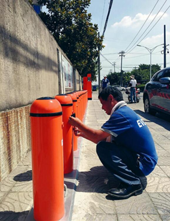 車輛安全卸下后,工人們來到花溪苑一區(qū)門口站點(diǎn)安裝調(diào)試新的機(jī)柜、鎖柱,并將新車一輛輛上軌,擺放整齊。為了不影響附近居民的使用,工作人員搶時(shí)間、戰(zhàn)高溫,基本做到了當(dāng)天拆當(dāng)天安裝,在24小時(shí)內(nèi)恢復(fù)正常使用。